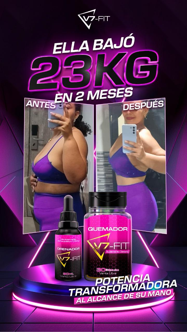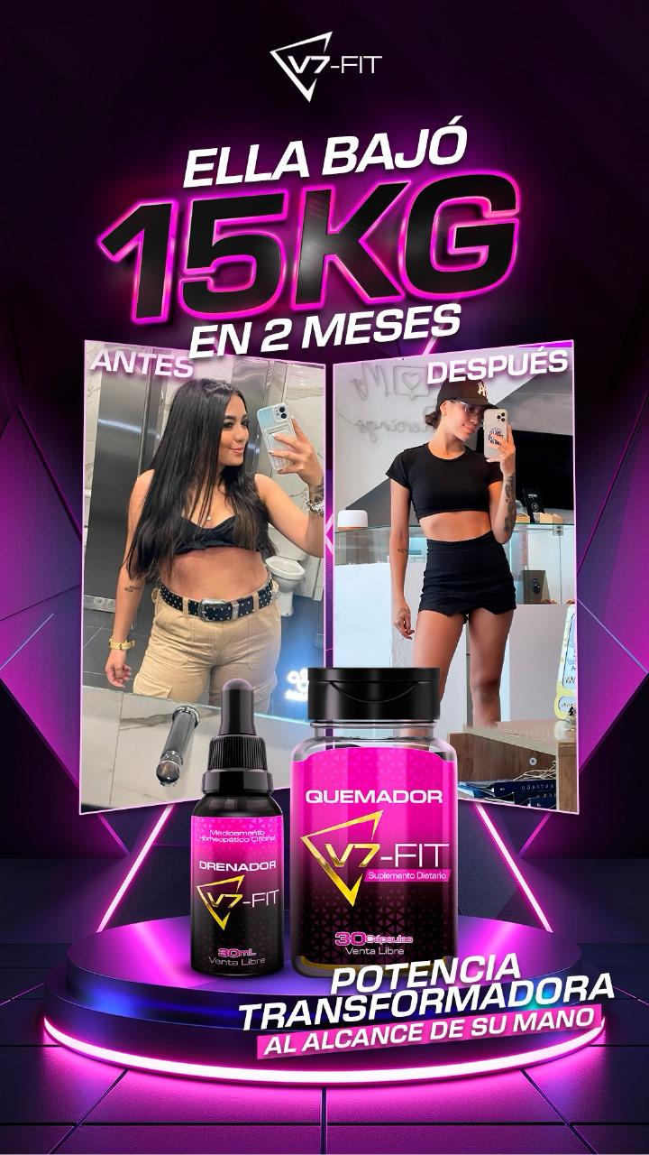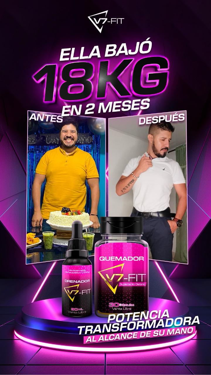 Transforma tu bienestar con el Kit V7 Fit: una combinación innovadora de pastillas y drenador, diseñada para ayudar a optimizar tu rutina diaria y darte ese impulso extra para sentirte renovado. Con ingredientes de alta calidad y una fórmula pensada para mejorar tu vitalidad, este kit se convierte en tu aliado perfecto para lucir y sentirte mejor desde adentro hacia afuera. Ideal para complementar un estilo de vida activo, el Kit V7 Fit aporta energía y te acompaña en cada paso hacia tus objetivos personales.