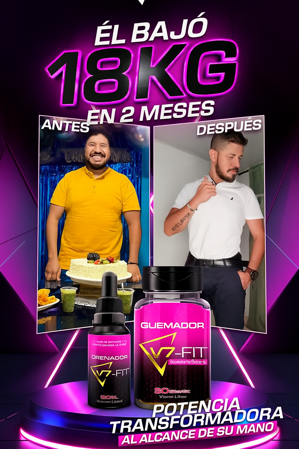 Transforma tu bienestar con el Kit V7 Fit: una combinación innovadora de pastillas y drenador, diseñada para ayudar a optimizar tu rutina diaria y darte ese impulso extra para sentirte renovado. Con ingredientes de alta calidad y una fórmula pensada para mejorar tu vitalidad, este kit se convierte en tu aliado perfecto para lucir y sentirte mejor desde adentro hacia afuera. Ideal para complementar un estilo de vida activo, el Kit V7 Fit aporta energía y te acompaña en cada paso hacia tus objetivos personales.